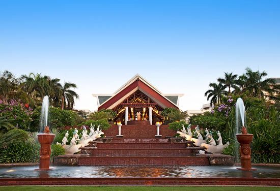 三亞喜來登度假酒店擁有得天獨厚的地理位置,位于亞龍灣的中心,正對亞龍灣高爾夫球場。湛藍的大海和銀白的沙灘是海洋生物棲息繁衍的天堂和戶外娛樂活動的理想之地。酒店距離三亞鳳凰機場30分鐘的車程,離三亞市中心僅一石之擲的距離。三亞喜來登度假酒店每間舒適豪華的客房均配有空調(diào)、電子保險箱、迷你吧和衛(wèi)星電視,從客房可觀賞到壯觀的南中國海景、花木蔥蘢的熱帶花園、環(huán)礁湖泳池或18洞的亞龍灣高爾夫俱樂部。三亞喜來登度假酒店餐飲服務設(shè)施種類繁多,設(shè)有瑤池西餐廳、香料園亞洲餐廳、白云閣中餐廳、池畔吧、美景臺大堂吧、桑吧葡萄酒吧等,時尚入流,充分融合了亞歐菜肴特色。三亞喜來登度假酒店擁有亞龍灣面積最大的宴會廳,可容納1400人,宴會廳與會前接待區(qū)毗鄰繁茂的花園,是舉辦餐前雞尾酒會的理想場所。與宴會廳搭配的還有16個會議廳,均裝備最先進的影音設(shè)施。度假村前的銀白色海灘綿延350米,康樂中心為您安排了一系列別具一格的娛樂活動,如摩托艇沖浪、滑水、航海、HOBIE、CATS、獨木舟、深海捕魚、潛水、香蕉船,還可以加入觀賞日落的海上巡游。其它運動項目還有沙灘排球、足球、籃球、登山、攀巖、攀越障礙、慢跑和自行車道、燈光網(wǎng)球場等。此外,三亞喜來登度假酒店spa為您提供各種舒緩壓力、安心靜性的療養(yǎng)服務,包括中國推拿、按摩、瑞士芳香按摩以及全套美容方案和精油按摩。