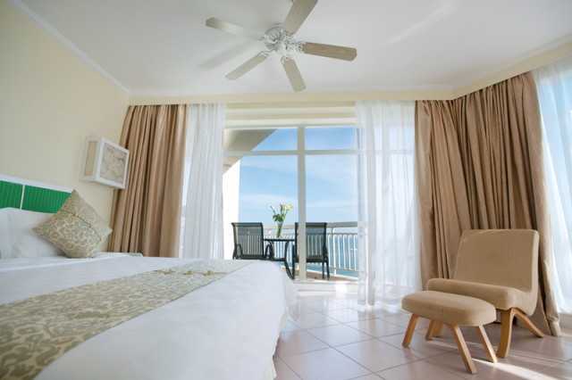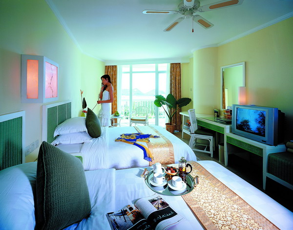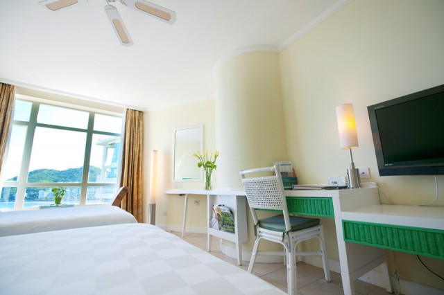 高級海景房,面積35平方米,樓層2-9層,無陽臺,30-50度海景大床(2*2米),雙標(1.35*2米),無浴缸 免費寬帶